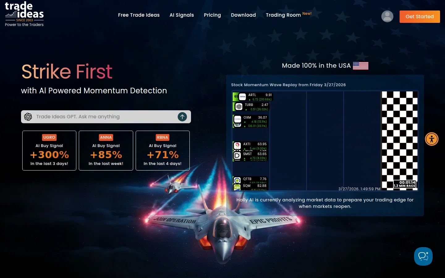 AI-powered stock scanner with Holly AI for automated trade signals, real-time alerts, and backtesting for active day traders. Trade Ideas offers a free tier, with paid plans from $127/month. Best suited for day traders, active traders, AI-driven traders, momentum traders, and scalpers.