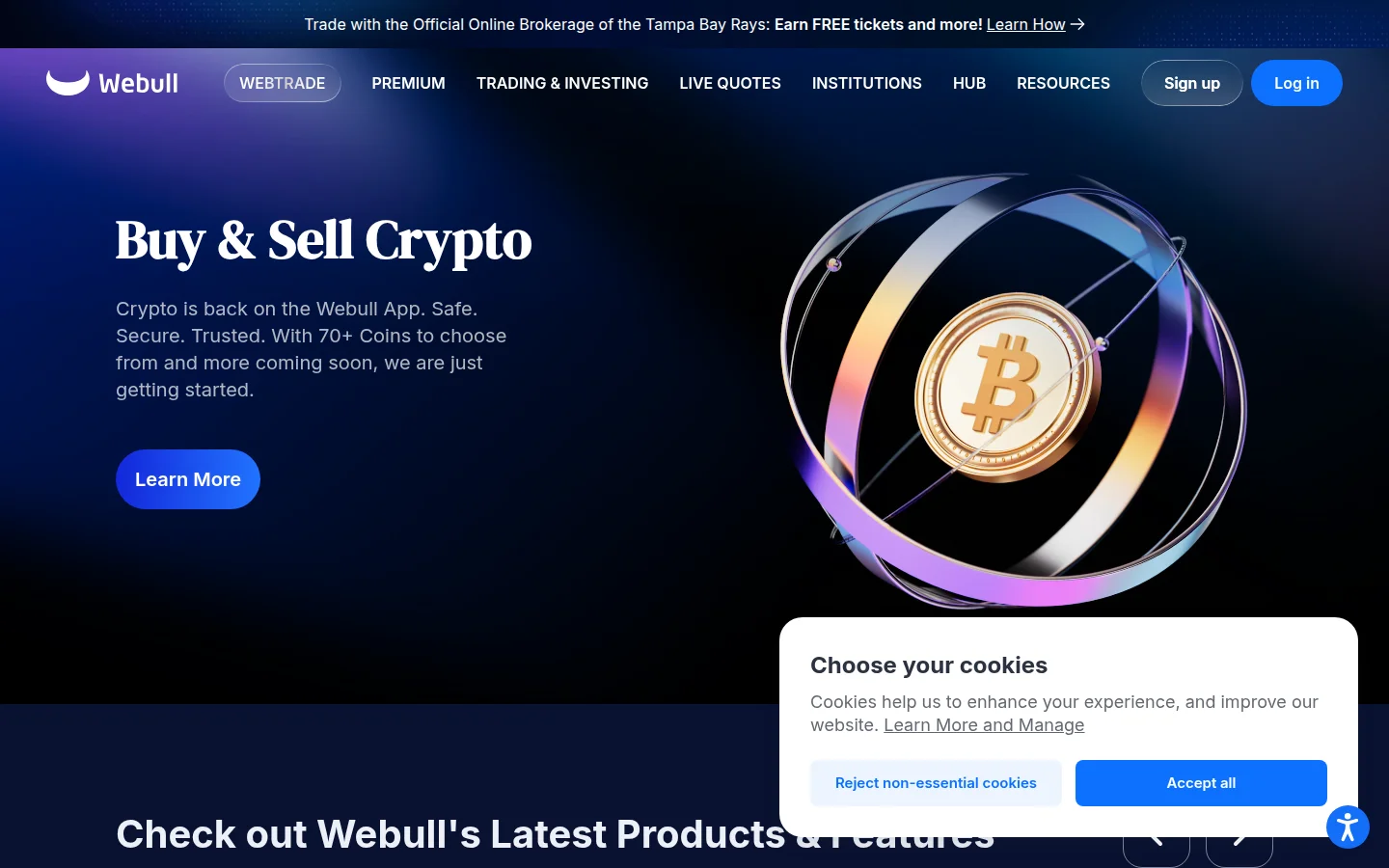 For crypto, trading is available 24/7 with 50+ coins including Bitcoin, Ethereum, Solana, and popular altcoins. The minimum crypto trade is just $1. One important limitation: you cannot transfer crypto to an external wallet. Your coins stay on Webull's platform.